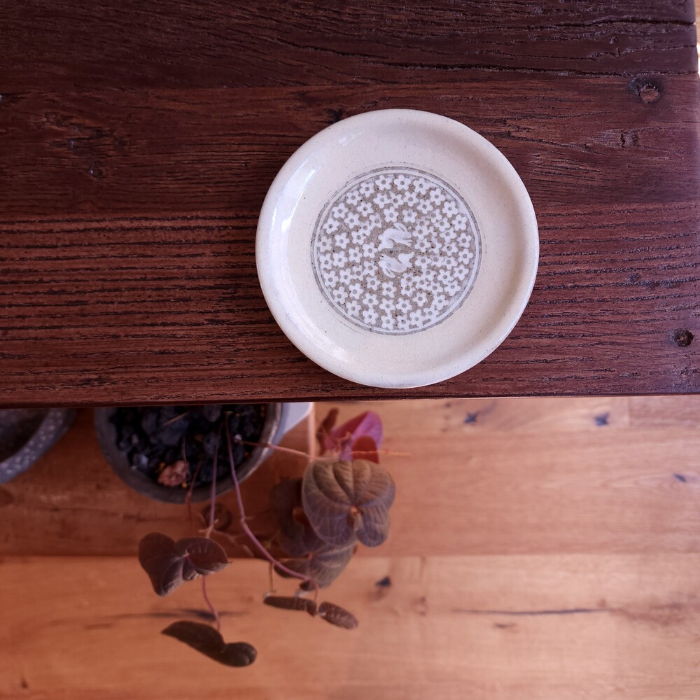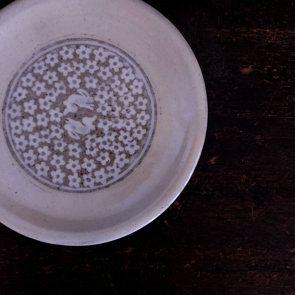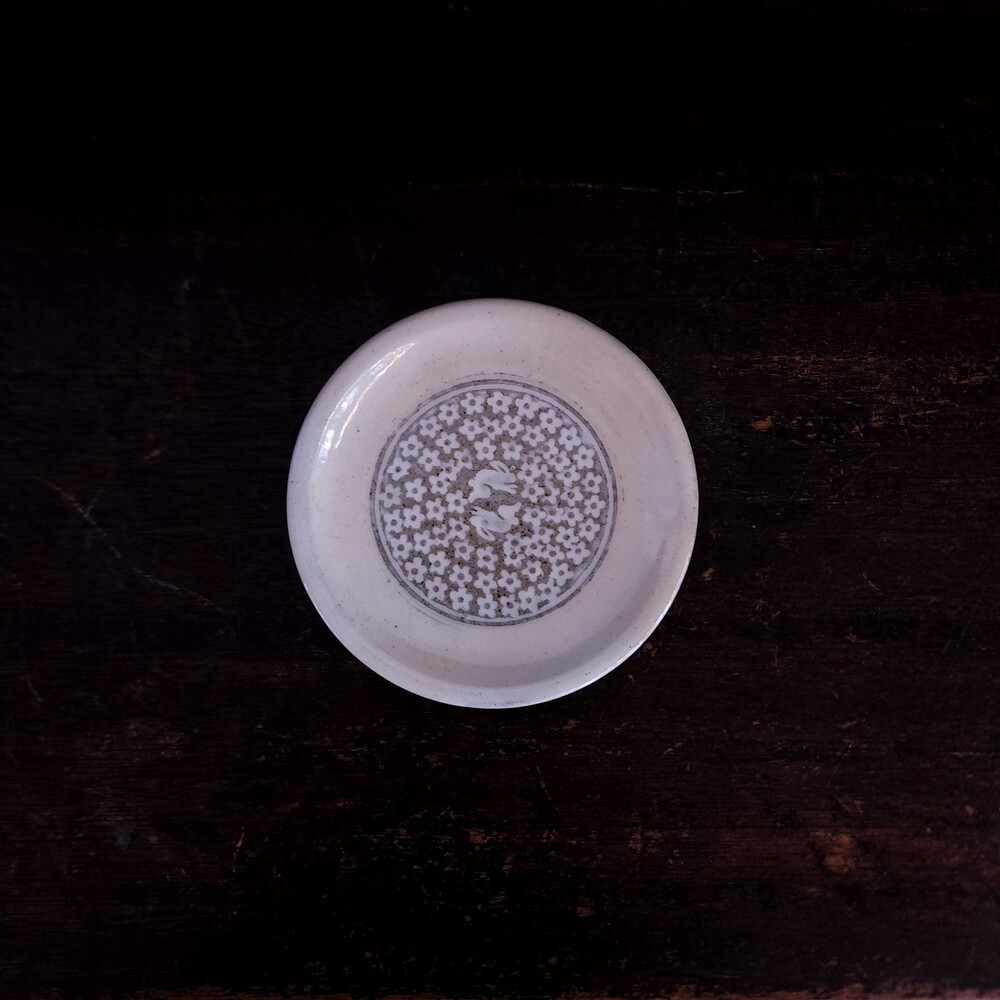 홍진석 작가의 분청 꽃밭토끼 작은 접시를 소개합니다.