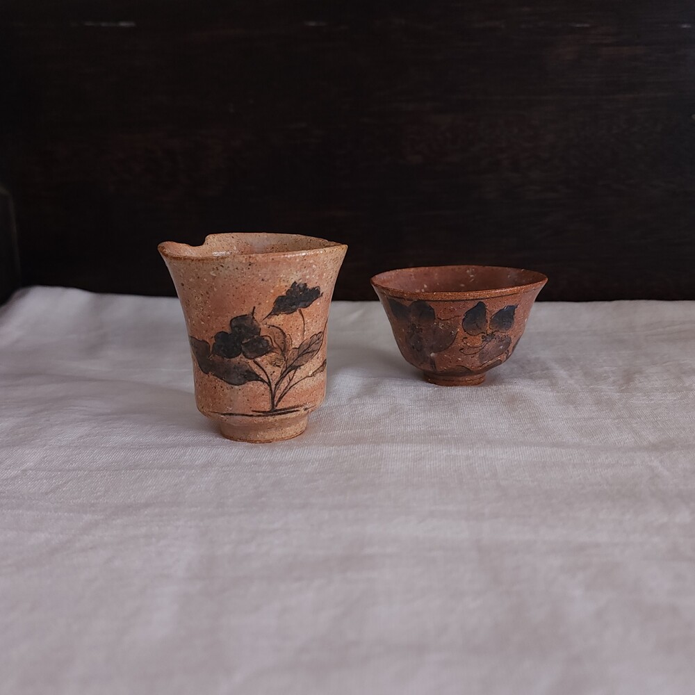 [효명 장현희] 붉은 다기들 - 도라지꽃 개완과 달개비 잔