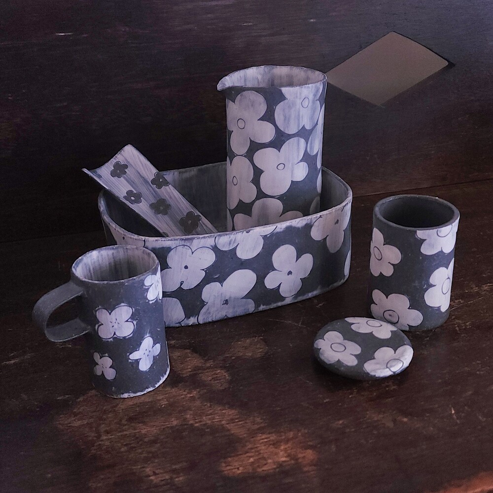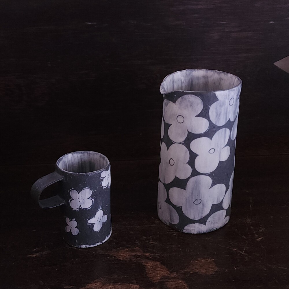안정은 작가의 분청 꽃 시리즈 중 '작은 손잡이 잔'을 소개합니다.