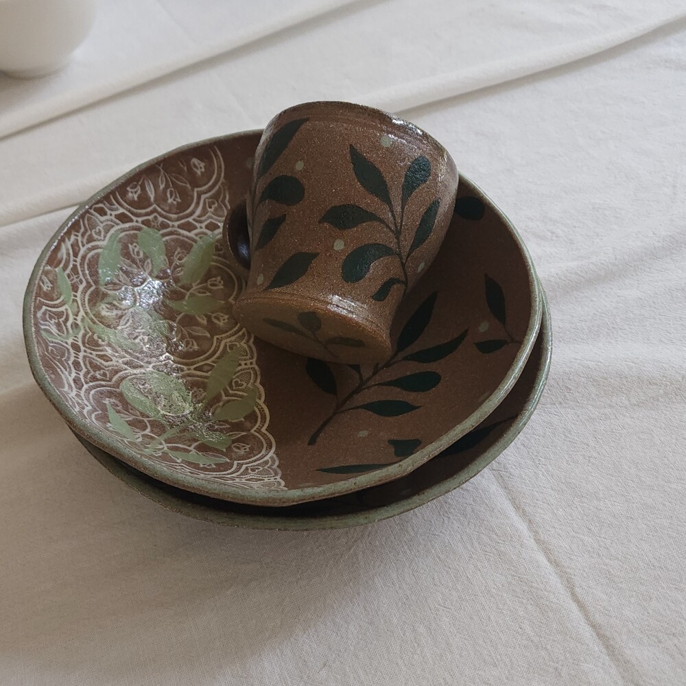 성도희 작가의 '그린 리프 보울과 머그'를 소개합니다.