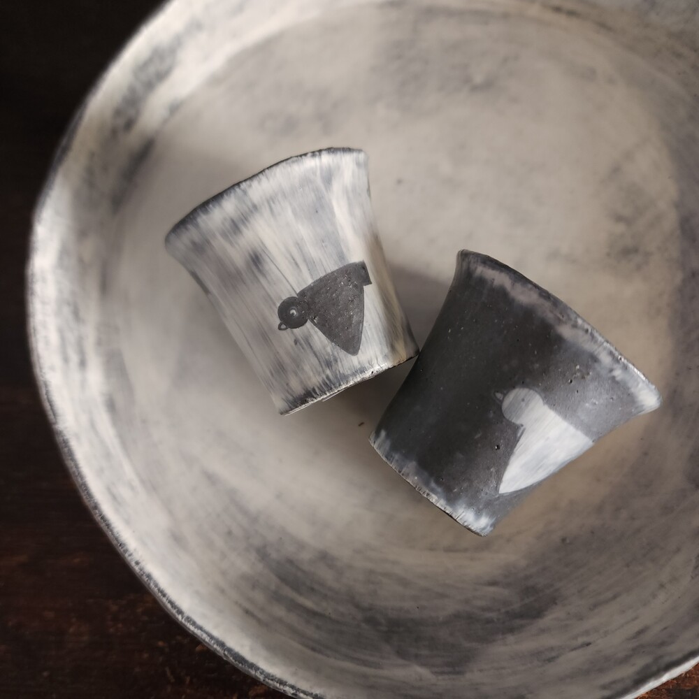 안정은 작가의 분청 새 시리즈 중 '잔과 숙우'를 소개합니다.