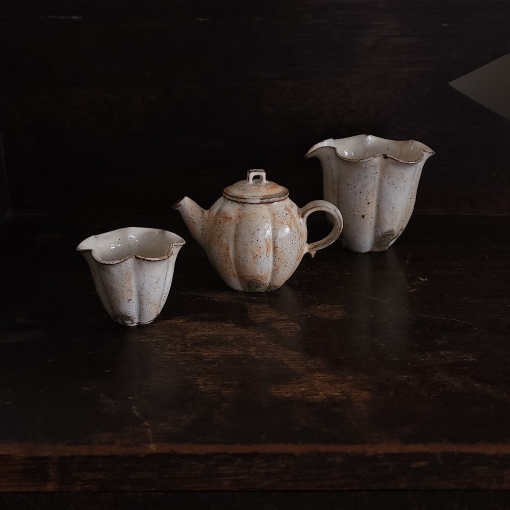 송춘호 작가의 분청 참외형 골지 다구들을 소개합니다.
