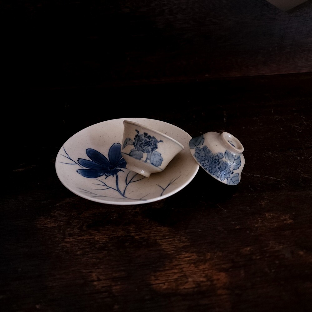 백자와 분청에 청화, 철화 등의 그림 작업이 얹어진 형태의 차도구 작업을 주로 하고 있습니다.