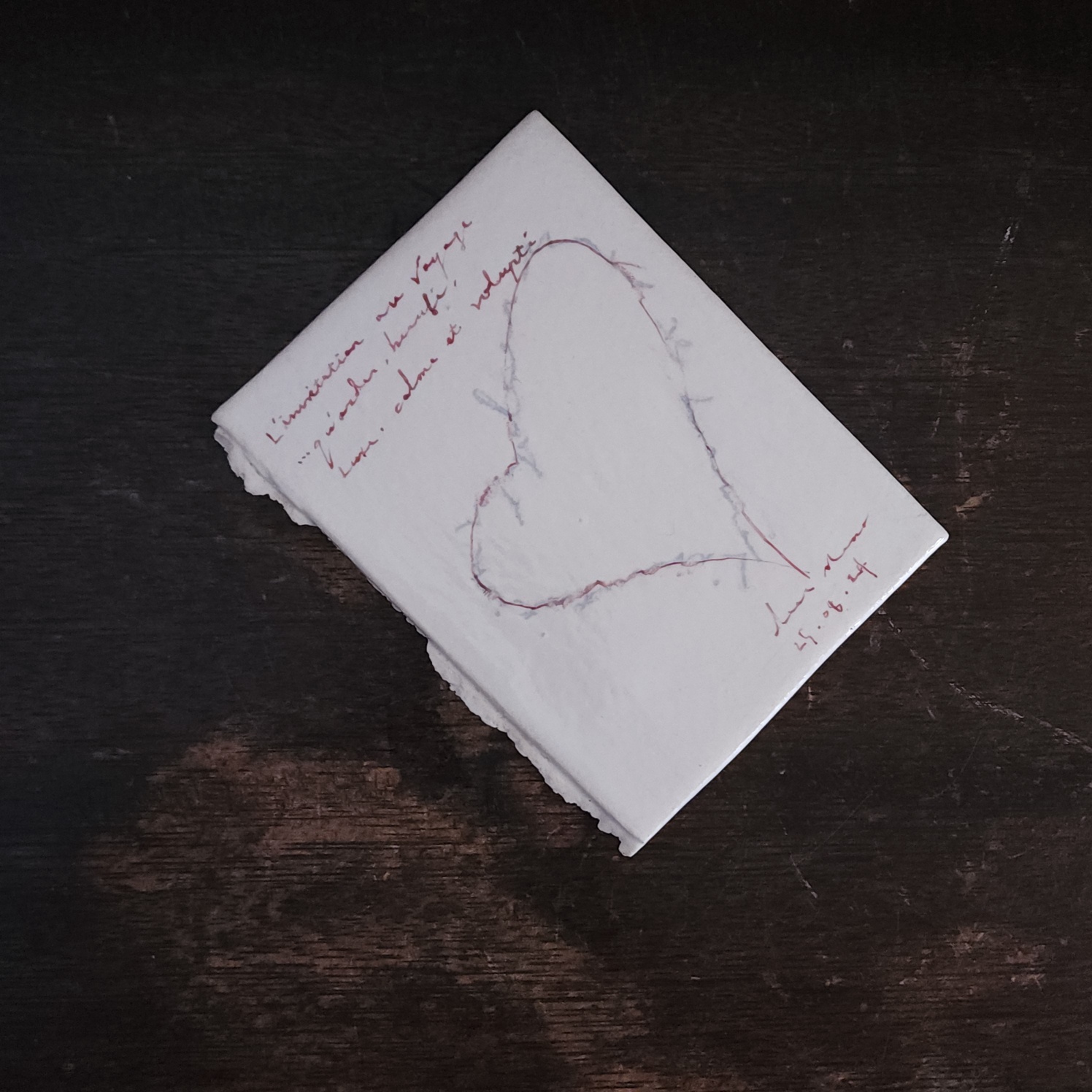 가느다란 펜의 끝을 와인 한 방울에 찍습니다.