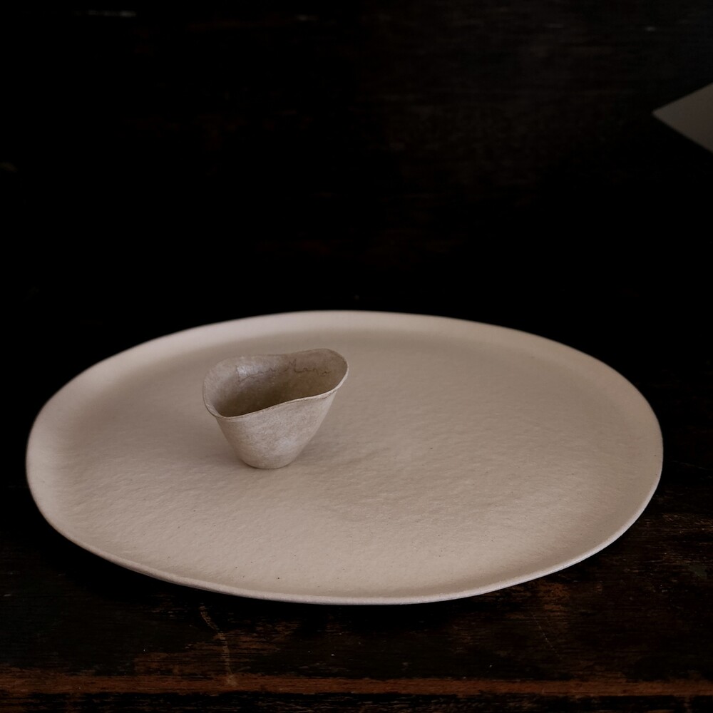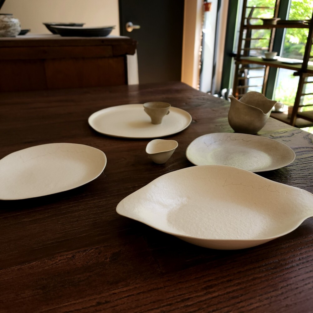 '새, 돌, 바람' 시리즈 - 평 접시 (아이보리 컬러)