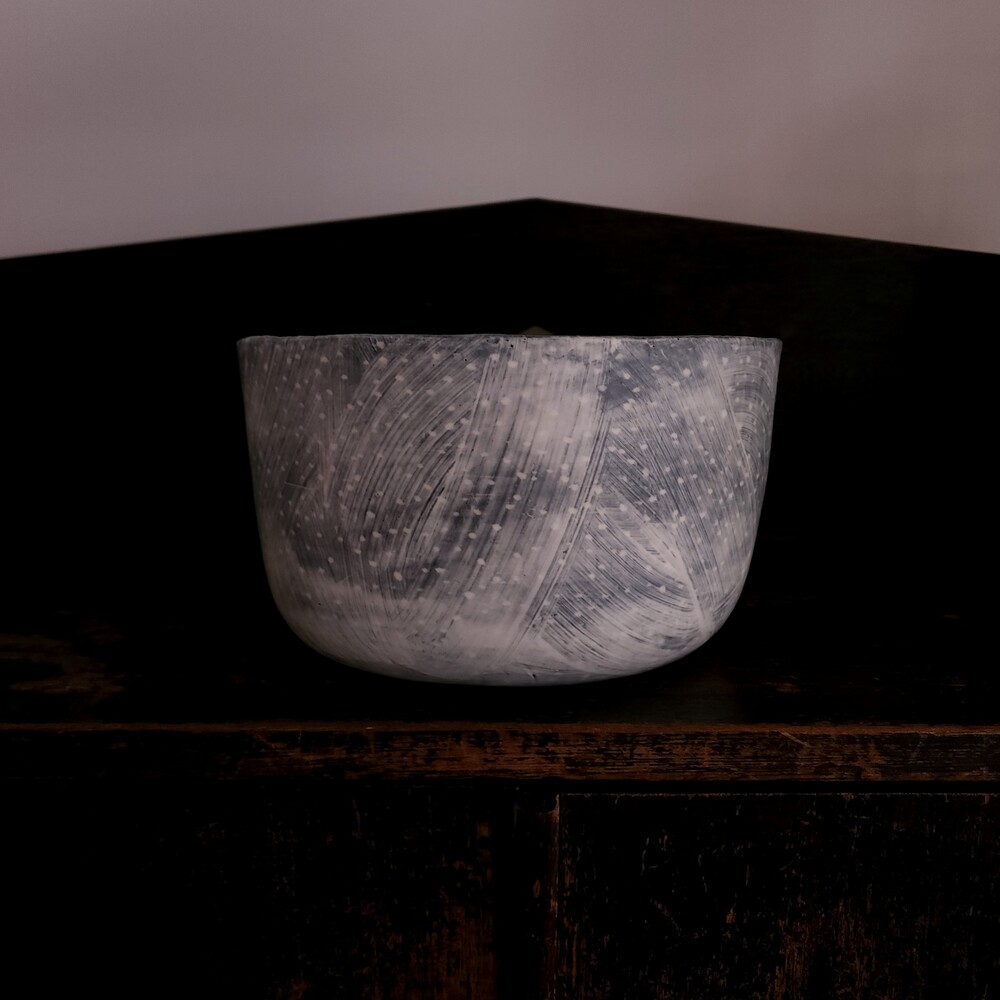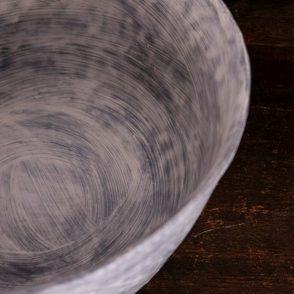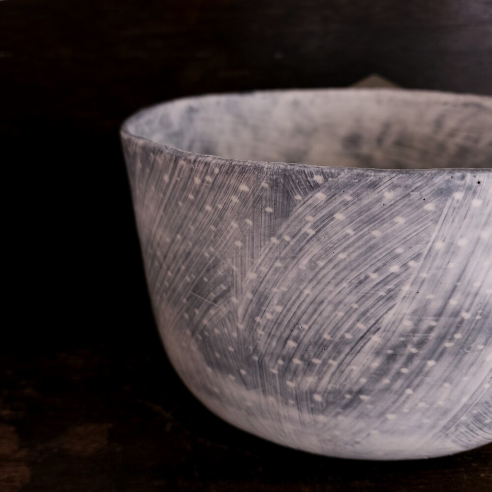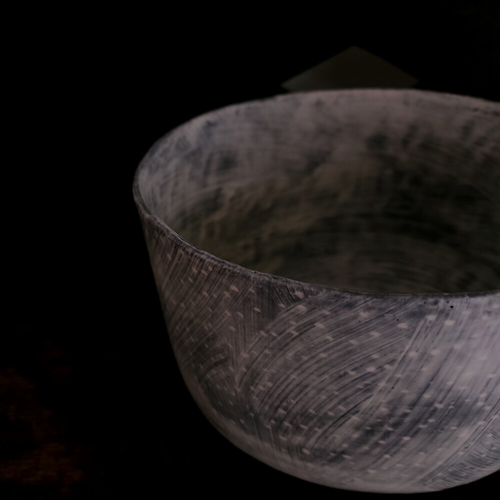 안정은 작가의 분청 상감 높은 원형 보울을 소개합니다.